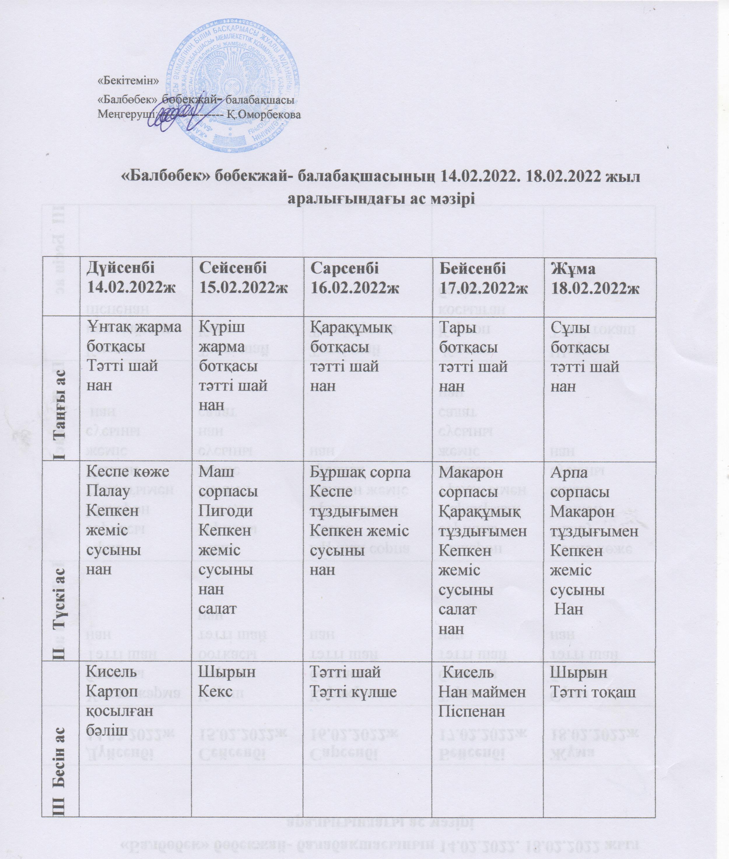 Балабақшаның күн тәртібі мен топтардың сабақ кестесі